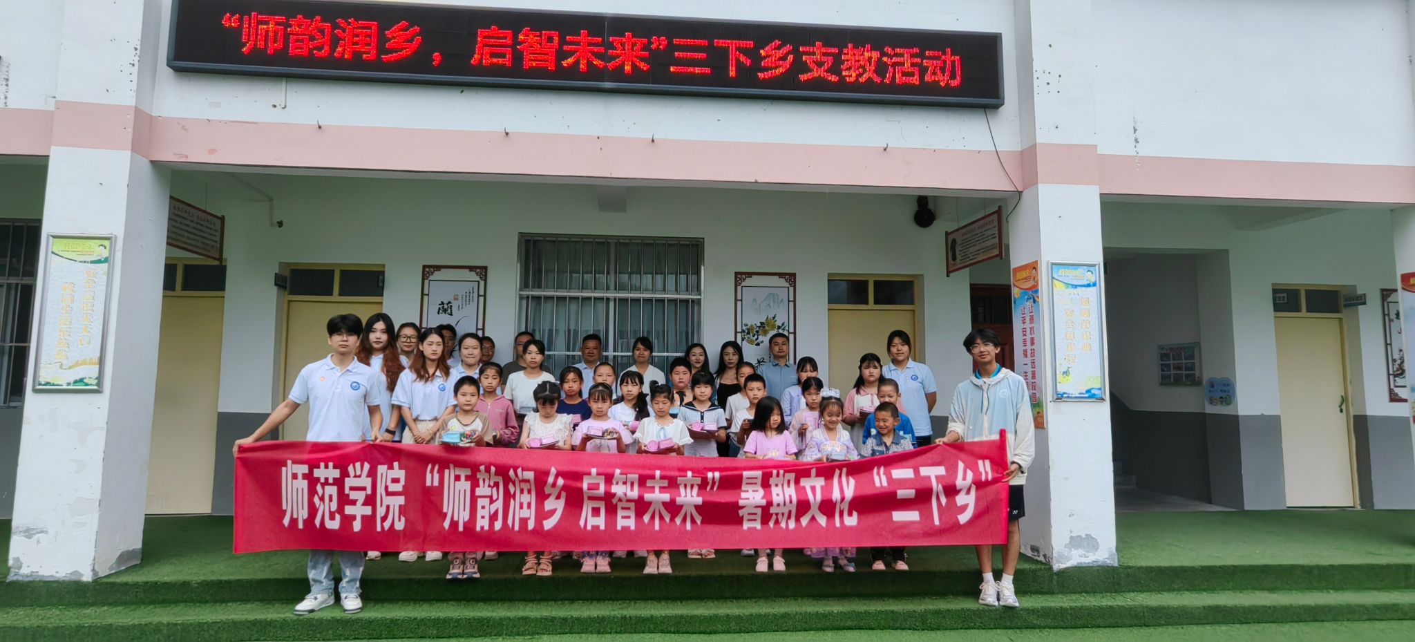 7月8日-7月12日,师范学院大学生支教团队进驻宁陕县龙王镇铁炉小学开展以“师韵润乡,智启未来”为主题的暑期社会实践活动。在启动仪式上,宁陕县龙王镇副镇长刘汪洋等镇村干部、铁炉小学校长李思林、我校驻村工作队员、师范学院学工办副主任刘昱彤及辅导员王晓波分别为参与的小学生们赠送文具,刘昱彤代表学院向铁炉小学赠送儿童绘本图书。8名支教团队成员进行了师德公约宣誓。李思林向参与学生们提出希望和要求,感谢支教团队的热心帮扶,...