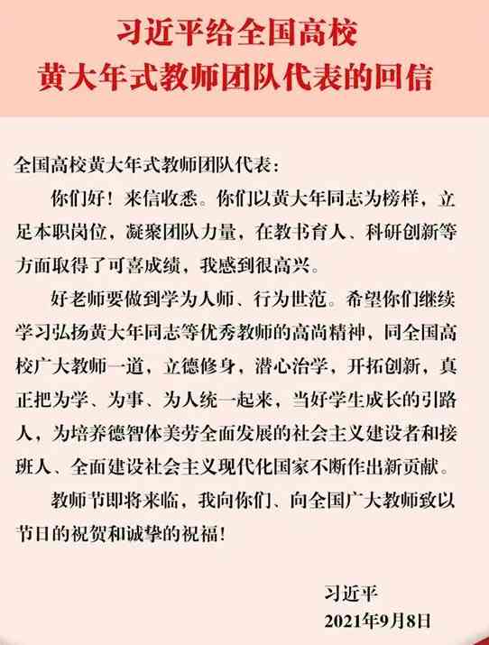9月8日,中共中央总书记、国家主席、中央军委主席习近平给全国高校黄大年式教师团队代表回信,对他们寄予殷切期望,并向全国广大教师致以节日的祝贺和诚挚的祝福。 我校师生第一时间多途径多形式学习习近平总书记...