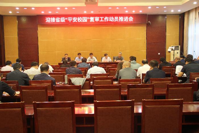 为深入贯彻落实中省市对安全稳定工作的一系列安排部署,扎实做好“平安校园”复查验收工作,9月18日上午,我校在办公楼一楼会议室召开2021年省级“平安校园”复审工作动员会。校党委副书记、副校长李忠良、党委委员袁...