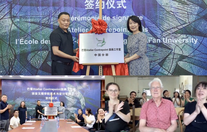 6月23日下午,我校和法国著名版画工作室共同举办线上签约和揭牌仪式。副校长邬连东出席并讲话。巴黎对位版画工作室主持人艾克多·索尼耶、负责人陈淑玲与6名艺术家,我校国际交流处处长赵彤,美术与设计学院院长田军、...