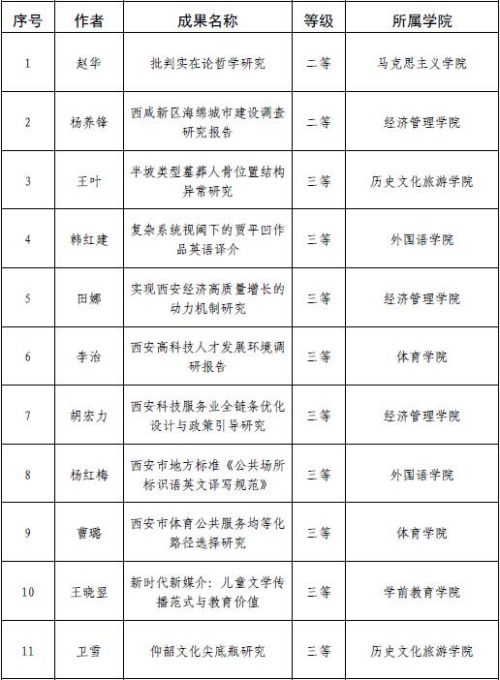 在近日公布的2022年度西安市哲学社会科学研究成果等级评定结果中,我校教师研究成果共获得二等奖2项、三等奖9项。 西安市哲学社会科学成果等级评定工作由西安市哲学社会科学成果等级评定委员会办公室组织,每两年进行...