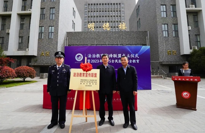 4月11日下午,学校与高新区丈八街道党工委、西安市公安局高新分局共同筹建的“法治教育宣传联盟”揭牌仪式在我校高新校区举行。市公安局高新分局党委副书记、政委许传彬,高新区党工委党群工作部副部长贺凯,高新区丈...