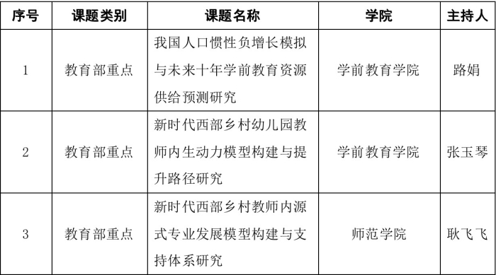 近日,全国教育科学规划领导小组办公室对全国教育科学规划2023年度课题立项名单进行公示,我校共计3位教师入选教育部重点项目,立项数量实现新突破。 近年来,学校高度重视全国教育科学规划等国家级项目申报工作,通...