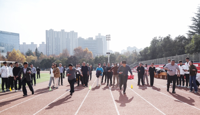 12月8日中午,学校机关党总支、机关工会分会“聚力新征程,携手创未来”趣味运动会在西操场举办。校长陈刚,副校长任晖、刘明利、龚杰昌,校纪委书记程默和百余名机关干部同场参与,享受运动快乐。 本次比赛设“...