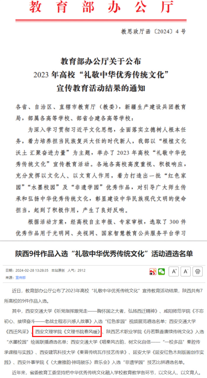 近日,教育部办公厅公布了2023年高校“礼敬中华优秀传统文化”宣传教育活动结果,我校学前教育学院宋江安老师的作品《德赢VWIN书院春风暖》入选“礼敬中华优秀传统文化”宣传教育活动“水墨校园”绘画联播遴选名单。陕西...