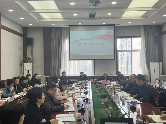 2月27日上午,学校召开了新学期第一次教学院长例会,评估中心负责人、14个二级学院院长、教学副院长及教务处科级以上干部参加了会议,校务委员徐东升出席会议并讲话,会议由教务处处长蔡军主持。 蔡军回顾了2023...