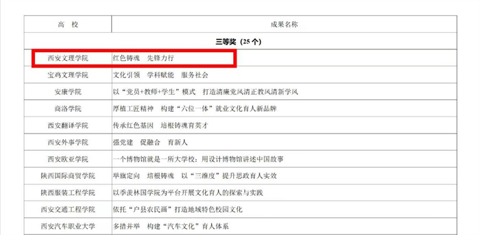 由中共陕西省高教工委举办的2023年全省高校校园文化建设优秀成果评选活动于日前揭晓,我校学前教育学院“红色文化”育人项目《红色铸魂 先锋力行》荣获全省高校校园文化建设优秀成果三等奖。 长期以来,学...