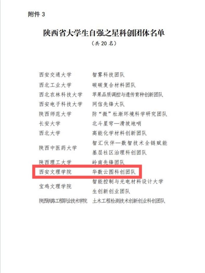 近日,团省委公示了陕西省大学生自强之星寻访活动结果,我校学生淮诗语、刘启熠、乔怡馨被评选为“陕西省大学生自强之星”(陕西共100名),其中淮诗语、刘启熠被推荐参评“中国大学生自强之星”(陕西省57名)。信息工程学院华数云图科创团队被评为陕西省大学生自强之星科创团体(陕西省共20支),该团体是市属高校唯一一个获奖的科创团队,这次评选也创历年之最。陕西省“大学生自强之星”是全省大学生队伍的青年代表,此次评选不仅是对我校学生成长成才的认可,...