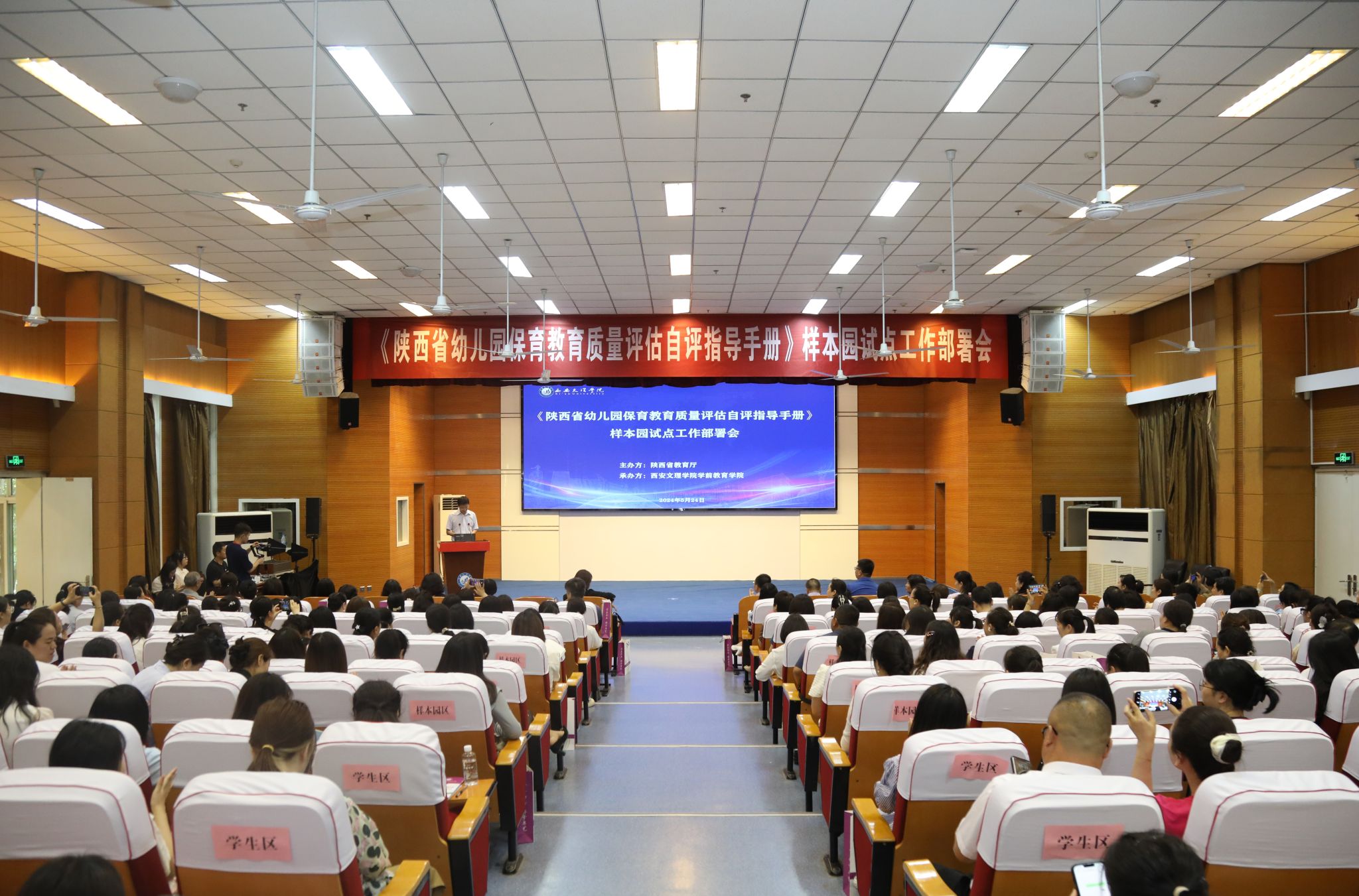 为深入贯彻落实《幼儿园保育教育质量评估指南》精神,推动《陕西省幼儿园保育教育质量评估自评指导手册》进一步完善,5月24日上午,学前教育学院在明德楼A区报告厅承办了《陕西省幼儿园保育教育质量评估自评指导手册》样本园试点工作部署会。陕西省教育厅基教一处副处长柳铭、西安德赢VWIN学院校务委员徐东升、50名省级培训专家、50所样本园园长及骨干教师代表、技术平台代表、学前教育学院项目组全体成员等近300人参加了会议。会议由教务处处长、...