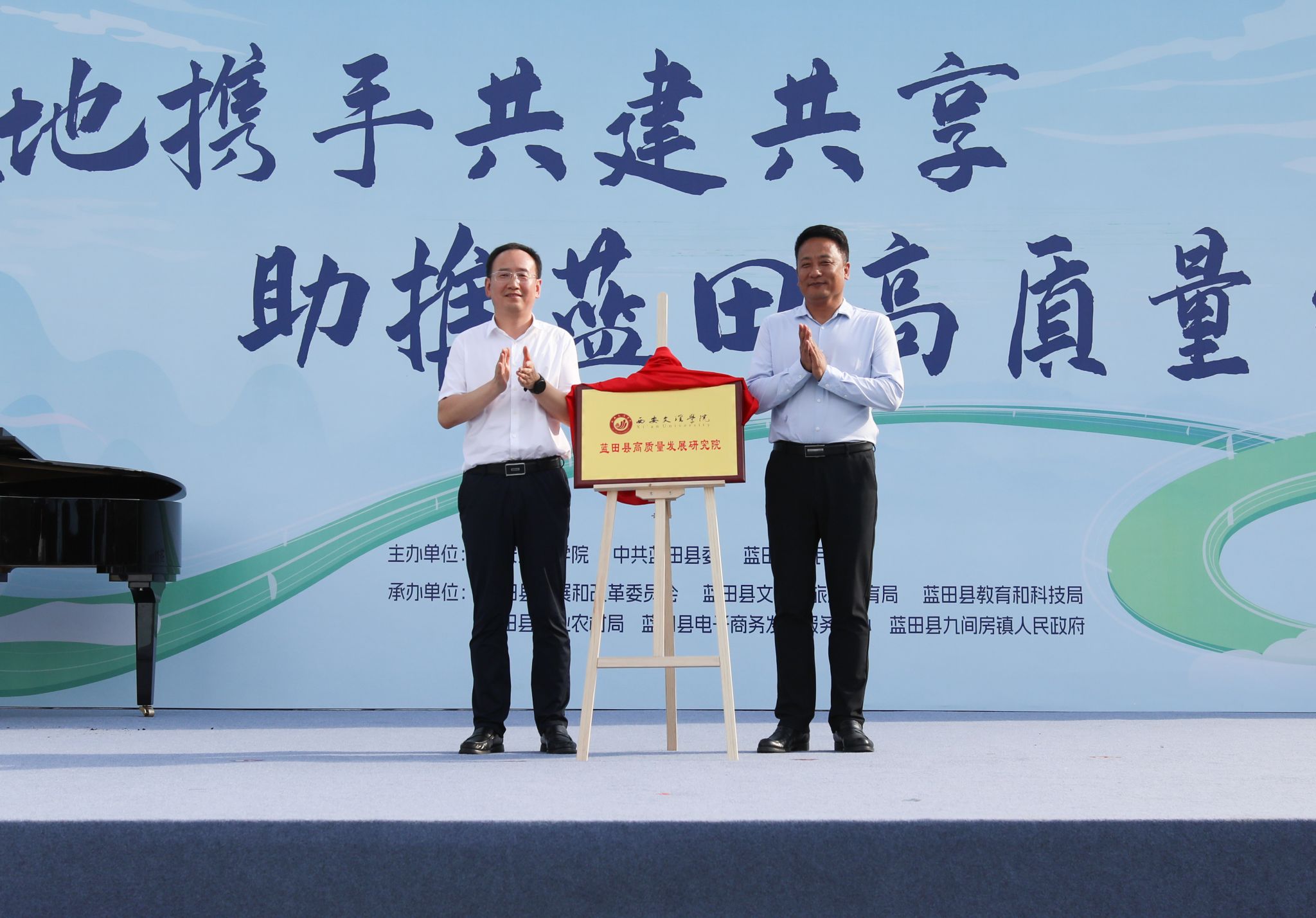 6月19日,西安德赢VWIN学院蓝田县高质量发展研究院成立大会暨我校毕业季汇报演出在蓝田县九间房镇峪口村荞麦岭举行。校党委委员、校务委员鲍锋,蓝田县委常委、副县长苏护强致辞,并为“西安德赢VWIN学院蓝田县高质量发展研究院”揭牌。蓝田县副县长李永波向受聘的6位专家颁发聘书,陕西省社科院副院长王建康作为专家代表做了表态发言。 苏护强在致辞中指出,近年来学校与蓝田深化校地合作、产教融合、科教融汇,共同开展多项务实合作。希望学校持续发挥自身人才、...