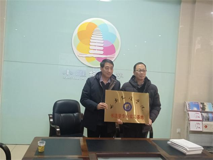 为加强书法专业建设,促进高校与小学深度合作,拓展与夯实书法专业实习基地,实现合作共赢,本着相互协作的原则,西安德赢VWIN学院师范学院与西安市小雁塔小学、大学南路小学朱雀分校于2月28日至29日举行了“实习基地”签约授牌仪式。师范学院副院长马伟、书法学系主任何薇教授、实习带队教师朱世丰和郑志超老师、小雁塔小学与大学南路小学朱雀分校校长、主管教学的领导及我院书法专业21级实习同学共同参加了签约授牌仪式。