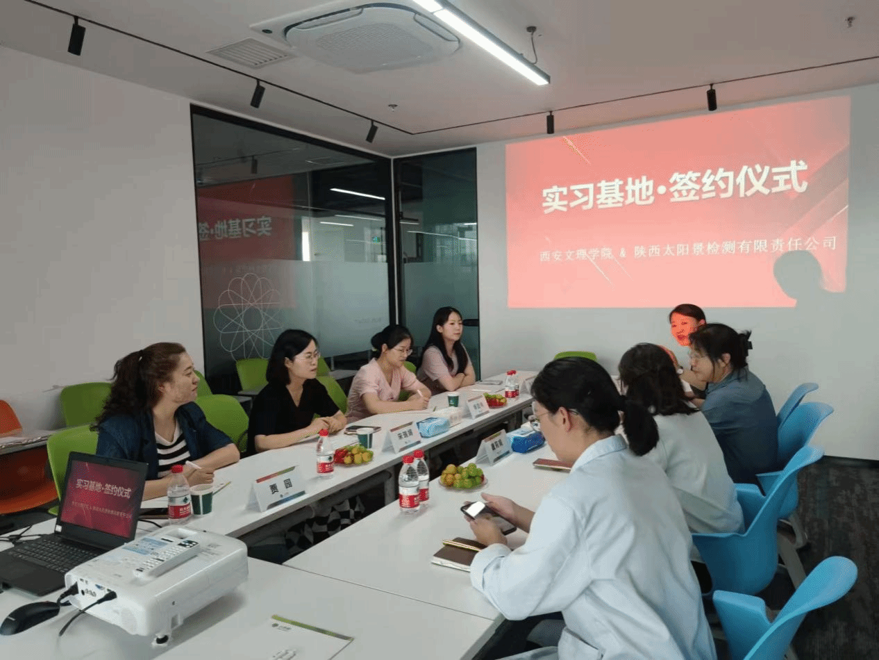 9月4日上午,化学工程学院与陕西太阳景检测有限责任公司实习基地签约挂牌仪式在太阳景公司会议室举行。太阳景公司质量总工程师魏莉娟、环境总工程师黄静瀛、人资经理李亚川等及化学工程学院教学副院长宋瑞娟教授、应用化学系主任贾园副教授、实习指导教师师白梅、辅导员教师李晨妤参加了此次会议。