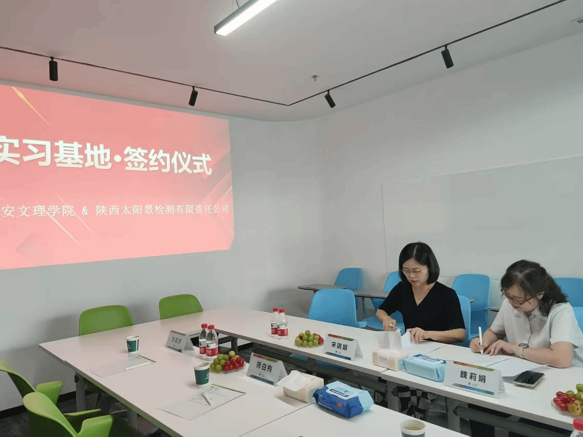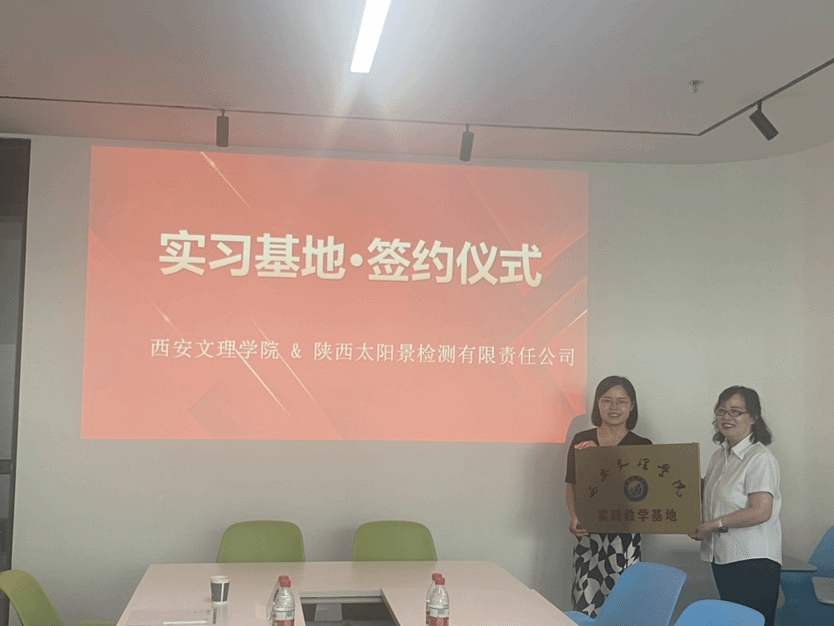 在热烈的掌声中,宋瑞娟教授与太阳景公司质量总工程师魏莉娟共同签署了实习实训基地合作协议,并共同为“西安德赢VWIN学院实践教学基地”揭牌。这一刻,不仅见证了双方合作的正式确立,更预示着未来双方在人才培养、科研合作等方面将有更加广阔的合作空间。