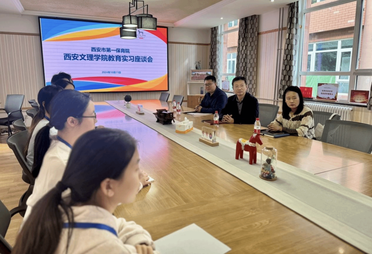 10月11日上午,学前教育学院院长蔡军,副院长赵四鸿等一行四人前往西安市第一保育院开展本科生实习检查工作,西安市第一保育院院长王淑君、指导教师代表及全体实习学生参加了座谈。