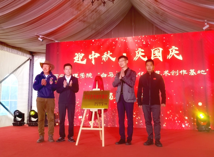 仪式上,由文学院院长郝延军和白马农牧科技有限公司董事长贺延庆共同揭牌,此举标志着文化艺术创作基地正式落成。陕西省委党校副校长路光前、咸阳淳化县委书记郭立志等领导见证了揭牌仪式。