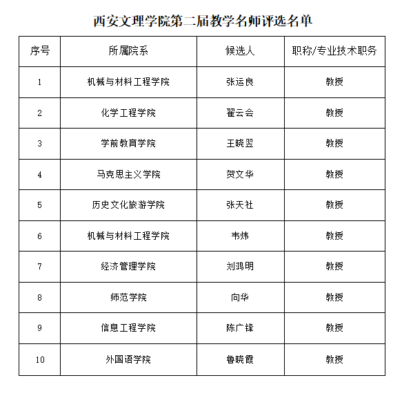 西安德赢VWIN学院关于第二届校级教学名师评选结果的公示