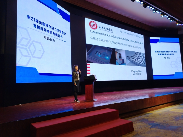 边培莹教授做了题为《铁基材料选区激光熔化(SLM)成形残余应力的演化及其影响》的学术专题报告。通过仿真方法得到铁基材料平面三维应力分布规律,并结合实验验证得到其应力演化机理,揭示了铁基材料增材制造残余应力的调控措施。