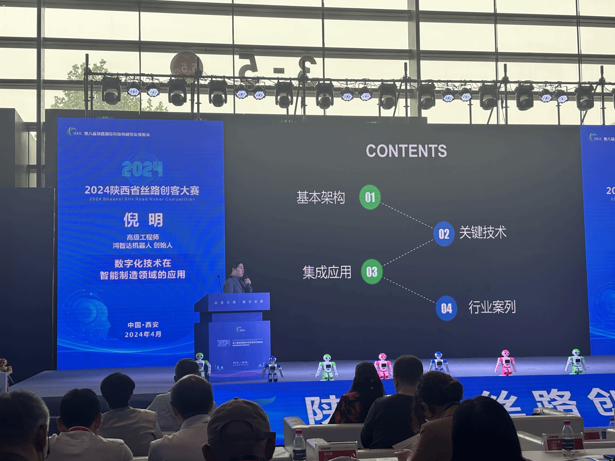 同时启动的陕西省丝路创客大赛企业项目路演报告有鸿智达机器人创始人的《数字化技术在智能制造领域的应用》、信达合瑞科技创始人的《智能钛材打磨机器人》、荟萃智能科技的《通用工业机器视觉助力制造业新质生产力水平提升中的应用》以及《人形机器人创新及AI+医疗》等,此次大赛为来自全国各地的青年才俊提供了展示创新思维和实践能力的平台。最后,张运良作为西安市人工智能机器人学会理事长做了总结发言。