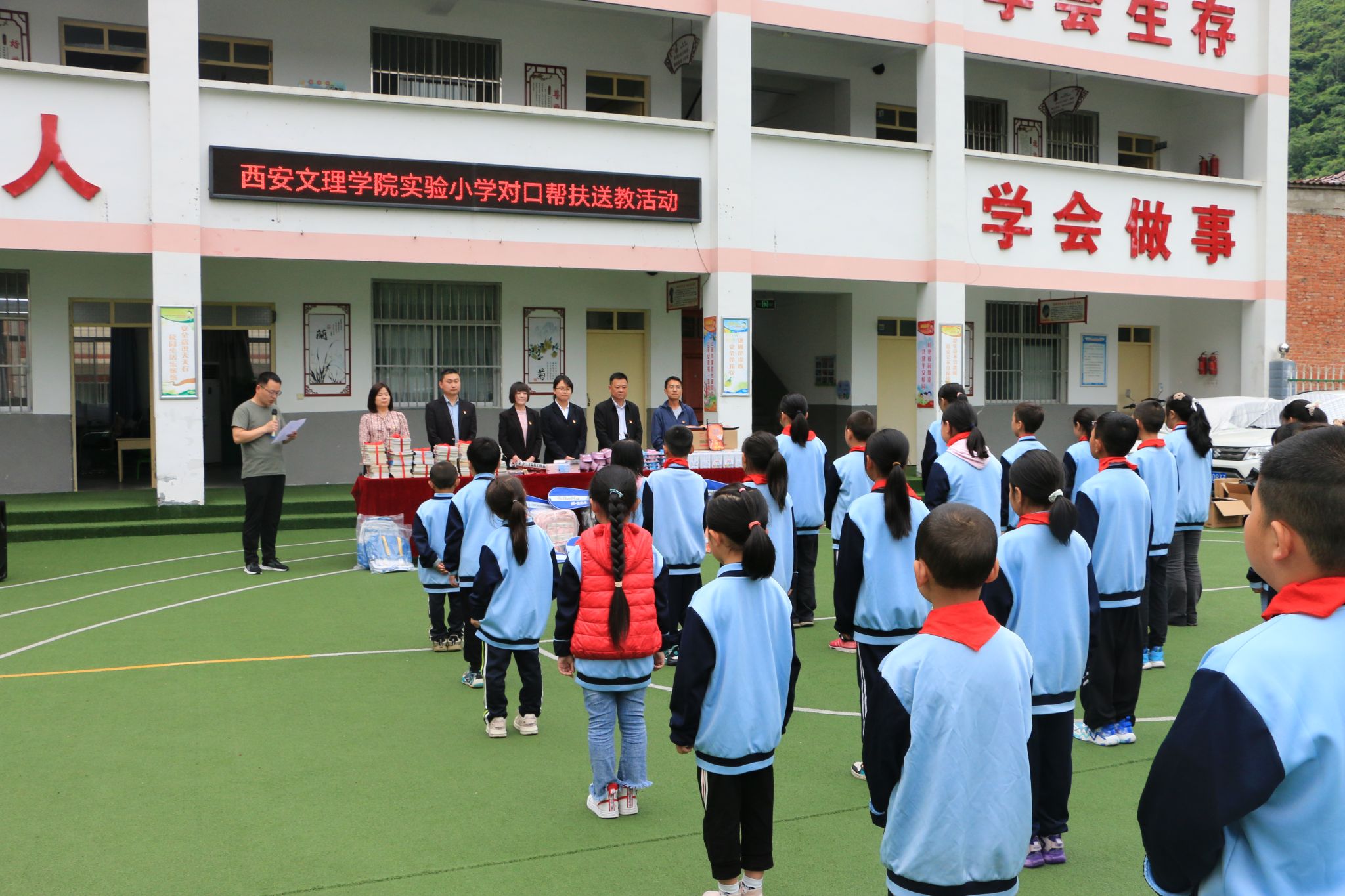 5月9日,西安德赢VWIN学院实验小学校长邵力、教导主任卢婉筠等一行6人赴宁陕县铁炉小学开展校际对口帮扶活动,与结对帮扶学校进行“零距离”交流和研讨,宁陕县龙王镇副镇长刘汪洋、龙王镇莲花村支书刘自知、莲花村驻村第一书记张健、宁陕县铁炉小学校长李思林以及西安德赢VWIN学院驻村干部参加了此次活动。