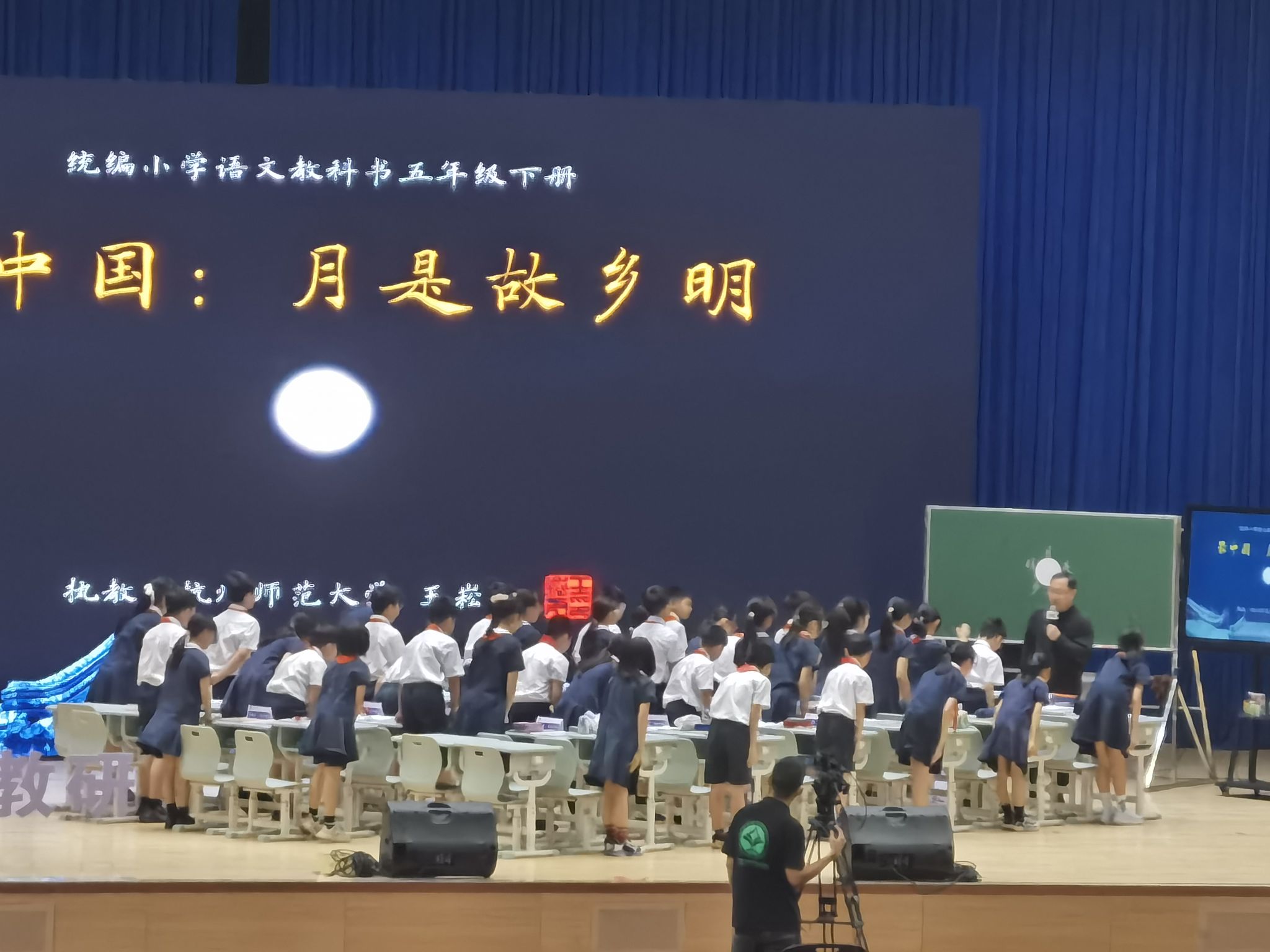北京师范大学文学院研究员、博士生导师吴欣歆作了题为《新课标背景下的语文教学变革》的报告,以小学语文“新课标”编者的身份,深入分析了“新课标”编写过程背后的教育初衷与历史经纬,探讨了新时代小学语文老师如何理解“新课标”精神,在“新课标”理念指引下上好一堂语文课的问题。杭州师范大学教授、浙江省特级教师王崧舟为老师们带来了《最中国?月是故乡明》的精彩课例,课后做了《语文要素与大概念》的主题报告,将自己的“大概念”课堂思维创新毫无保留地分享给与会教师,拓宽了老师们的眼界,丰富了理论储备,也进一步加深了教师们对新时期语文课堂“是什么”“怎样上”等问题的反思。