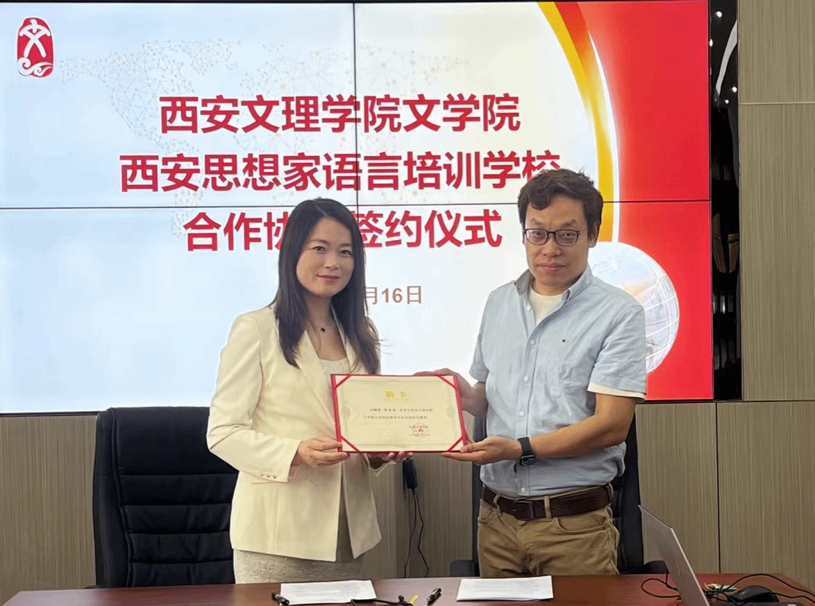 随后,郝延军、李盼盼签订西安德赢VWIN学院、西安思想家语言培训学校合作协议,董洪杰为李盼盼颁发西安德赢VWIN学院文学院汉语国际教育专业实践指导教师聘书。