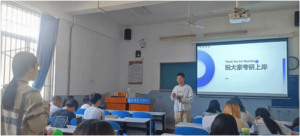 4月25日,外国语学院组织召开日语专业、翻译专业考研经验交流分享会,会议由毕业班辅导员张国利主持,2024届日语专业、翻译专业全体学生参加。张国利介绍了学院2024届毕业生国内考研及国外升学的总体情况并给出职业规划建议。成功考取广东外语外贸大学英语笔译专业的陈鑫同学,为同学们详细讲述了自己的择校、备考经验。被山西大学法律(非法学)专业拟录取的张文婧同学分享了自己的跨专业考研经历,为学弟学妹们跨专业升学提供了参考。