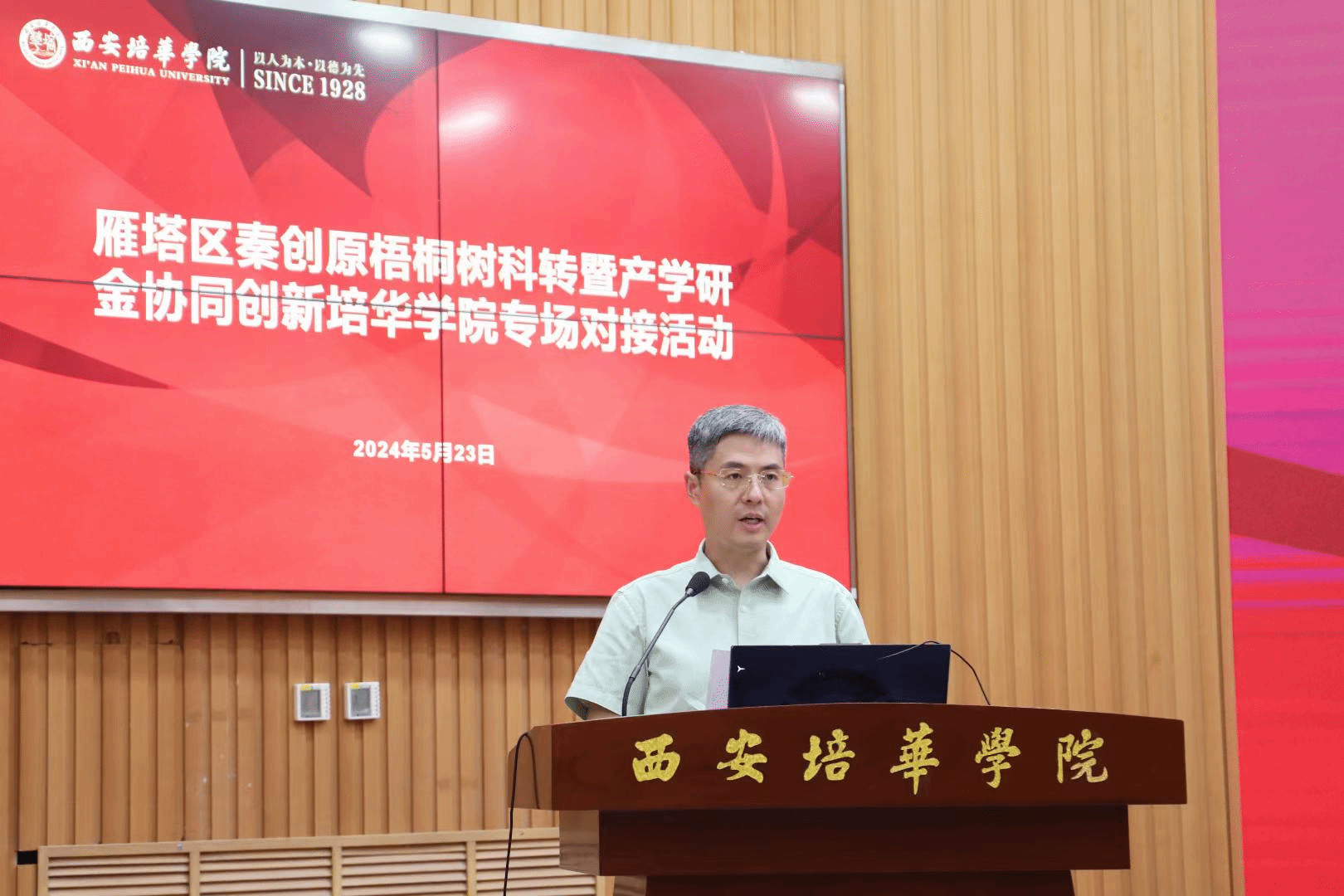 5月23日,我校生物与环境工程学院梧桐树科转专员雷凯博士应邀参加并主持“雁塔区秦创原梧桐树科转暨产学研金协同创新培华学院专场对接会”。本场活动由西安市科学技术局指导,雁塔区科技和工业信息化局主办,西安培华学院、陕西葵垦网络科技有限公司、西安三立联合知识产权有限公司联合协办。活动吸引了西安财经大学、中国建设银行、陕西赛微高科技有限公司、陕西秦绚科技有限公司等15家高校、银行及科技企业参加。