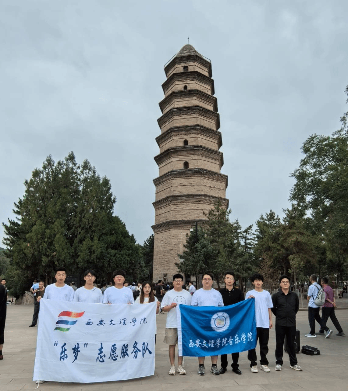 几回回梦里回延安,双手搂定宝塔山。延安,是中国革命的圣地。孕育革命力量的延安,贡献了“延安精神”,而这一红色精神培育了一代代中国共产党人,是我们党的宝贵精神财富。“乐梦”志愿服务队以实践继承红色血脉、发挥专业所长,追溯艺术学院红色院史,寻根鲁艺精神,利用好革命旧址和红色资源,通过实践教育引导学生厚植爱国主义情怀,不断彰显音乐学子唱响红色的青春力量,以音乐为媒介深入传递延安精神。