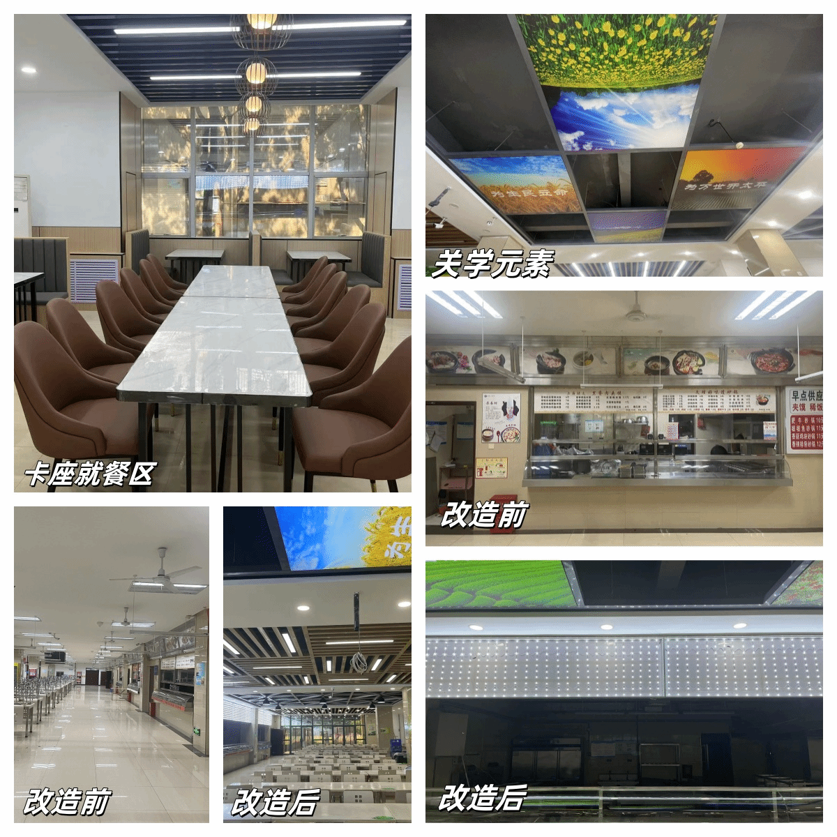 为配合新的管理模式,我处对沁德苑餐厅的硬件设施进行了改造升级,沁德苑餐厅一层吊顶维修提升项目彻底解决沁德苑餐厅一层因吊顶年久失修存在的鼠患问题,全面加强有害生物防治工作,确保师生食品卫生安全,同时在设计中融入以“横渠四句”为代表的关学精神元素,形成具有德赢VWIN特色的设计。为一层加装了卡座就餐区,全面提升了就餐体验。对沁德苑一二层进行了改造扩充,改造升级后档口数由原来的12个提升到24个,经营品种更加丰富,满足师生的不同就餐需求将会得以满足。
