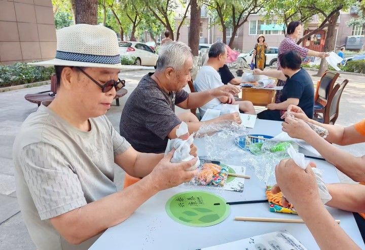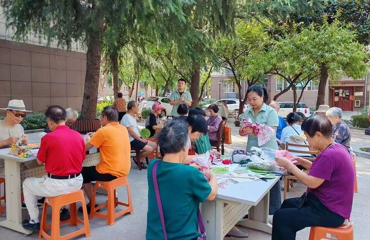 9月10日上午,翠华路社区活动现场的桌上摆满了制作艾草养生锤所需的各种材料,吸引了众多离退休教职工积极参与,他们在这里共同回忆教书育人的美好时光,一同学习亲手制作艾草养生锤。中医师向大家详细介绍了艾草的药用价值及养生锤制作方法,在医师的指导下,大家纷纷动手,从挑选艾草、准备布料到包缠锤套,每一步都充满了乐趣。随着一双双巧手的忙碌,一个个色彩鲜艳、香气扑鼻的艾草养生锤制作完成。