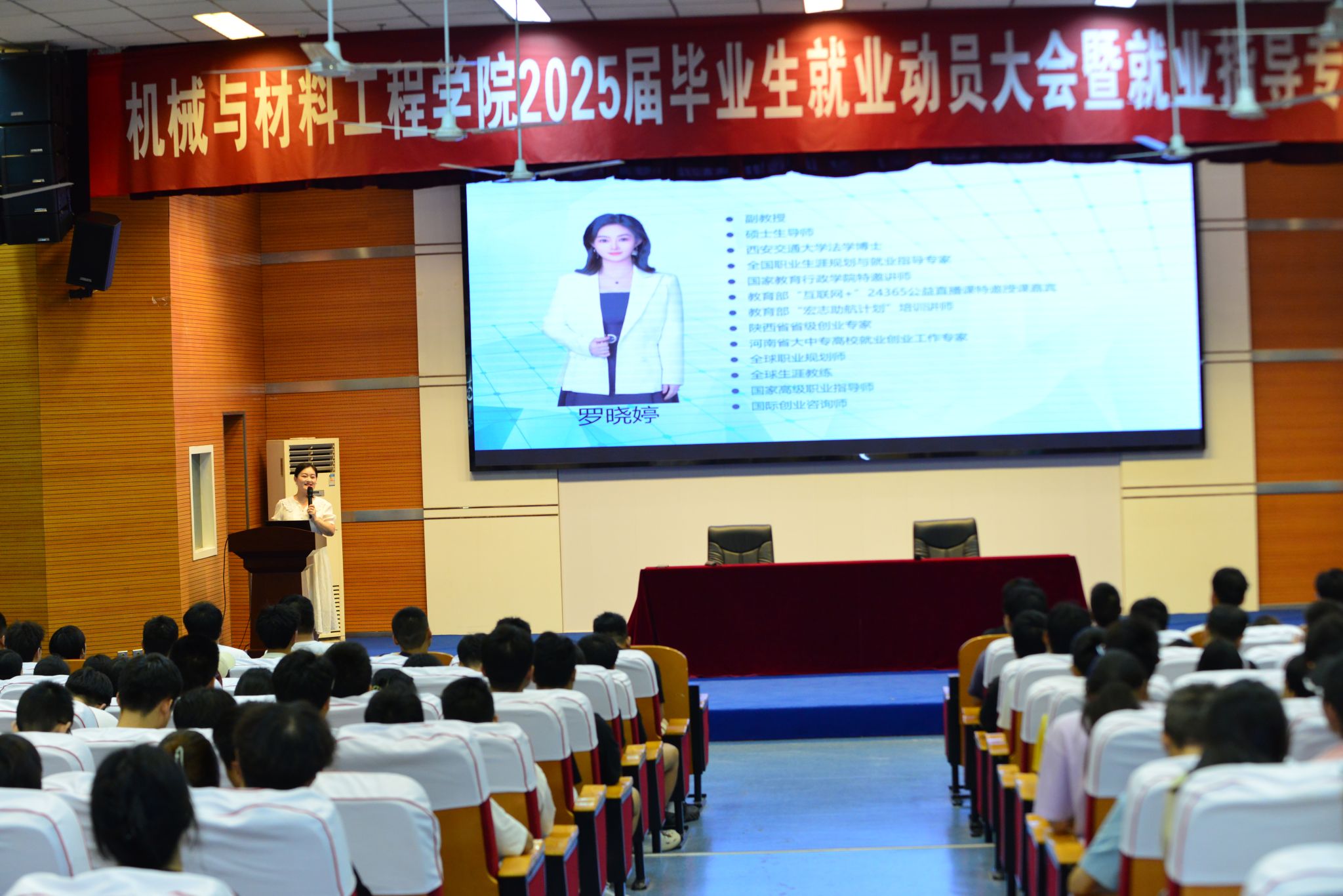 为深入贯彻落实党中央、国务院关于“稳就业”、“保就业”工作决策部署,积极响应我校就业工作会议精神和相关要求,进一步引导2025届毕业生明晰就业形势、把握就业机会、积极主动就业。9月13日下午,机械与材料工程学院在明德楼A区报告厅召开2025届毕业生就业动员大会暨就业指导专题讲座。学院党总支副书记杜丽娜、各系主任、辅导员以及2025届毕业生共计300余人参会。会议由副书记杜丽娜主持。