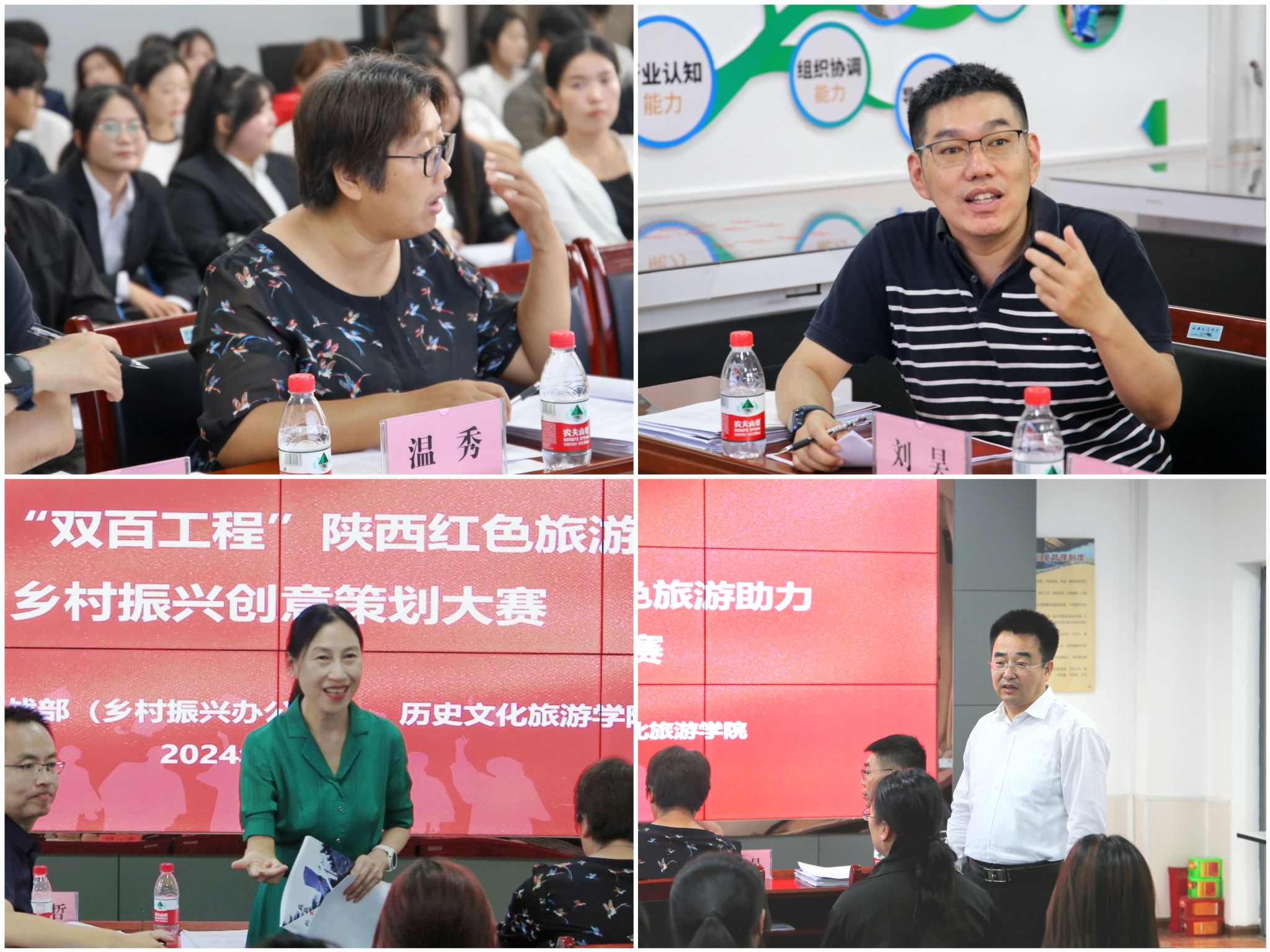 为全面贯彻习近平新时代中国特色社会主义思想和党的二十大精神,深入推进陕西红色旅游发展和乡村振兴战略,9月13日,我校举办2024年“双百工程”陕西红色旅游助力乡村振兴创意策划大赛,大赛由党委统战部(乡村振兴办公室)和历史文化旅游学院共同承办,党委统战部常务副部长、乡村振兴办公室主任荆晓萍、历史文化旅游学院院长崔林、党总支书记李东升等出席比赛活动。