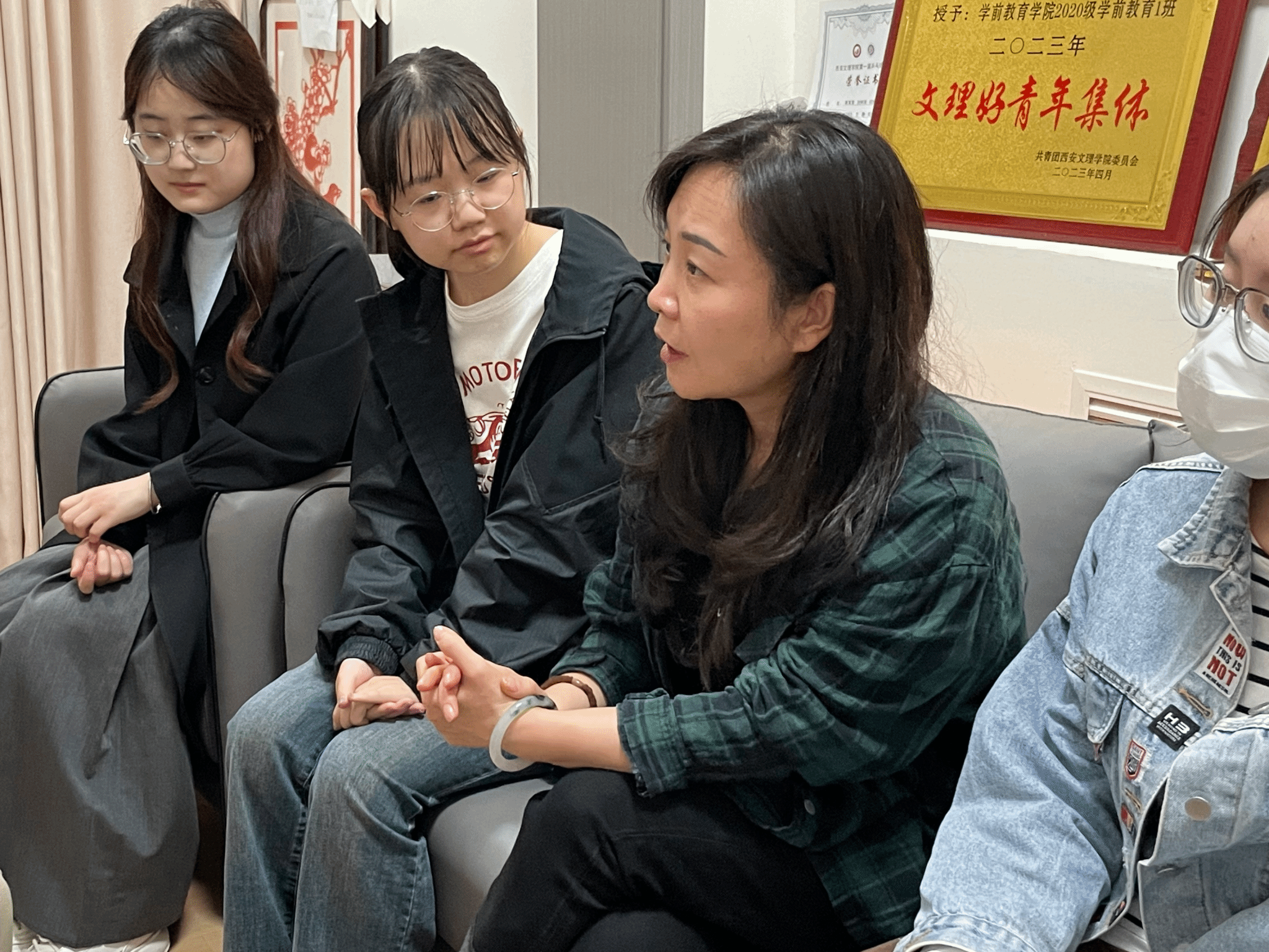 晚餐结束后,大家一同前往东铭5号公寓的学院“一站式”社区党建+心理工作站,继续进行座谈交流。在谈心谈话中,向维娜老师认真听取了同学们的诉求,同学们提到了一些实际问题,例如学院设立考研自习室的管理形式,以及如何协调教育实习与考研备考之间的时间冲突等。向老师表示:学院领导高度重视学院考研学生的具体情况,会充分考虑同学们的需求,全力以赴为考研学子提供良好的学习和生活条件,为大家创造一个安静、舒适的学习环境。