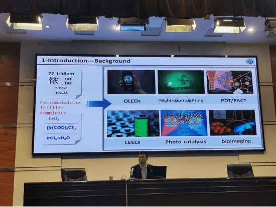 吕兴强教授首先介绍铱配合物的发展历史,金属铱配合物因结构易修饰、发光效率高和发光寿命长等特性,在光学材料、生物传感、生物成像和光动力治疗等领域应用广泛,讲述了铱配合物的合成方法。然后,他介绍了铱配合物的位置异构、价态异构、光学异构和几何异构化的研究方向。最后,他介绍了近几年铱配合物在靶向细胞器生物成像和提升光动力治疗疗效作为抗癌药物方面的应用和研究成果,并对铱配合物的面临的挑战与展望进行了总结。