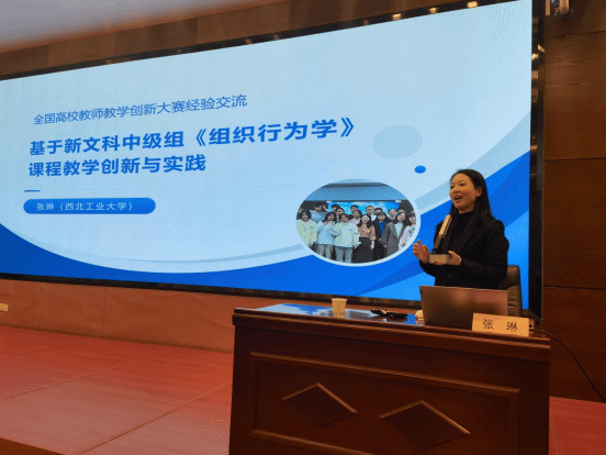 张琳老师是西北工业大学公共政策与管理学院公共管理系副主任,硕士生导师,曾经荣获获第三届全国高校教师教学创新大赛一等奖,主讲的《组织行为学》课程被评为陕西省一流本科课程。她首先根据自己参加全国高校教师教学创新大赛的经历,就如何做好创新报告、课堂实录以及创新成果汇报向与会老师做了非常具体的经验分享。然后,张琳老师以她主讲的《组织行为学》第一节课为主要内容,进行了示范授课,其引入入胜的教学设计巧妙的激发了学生的学习积极性,为在座的我校教师提供了很好的教学示范。