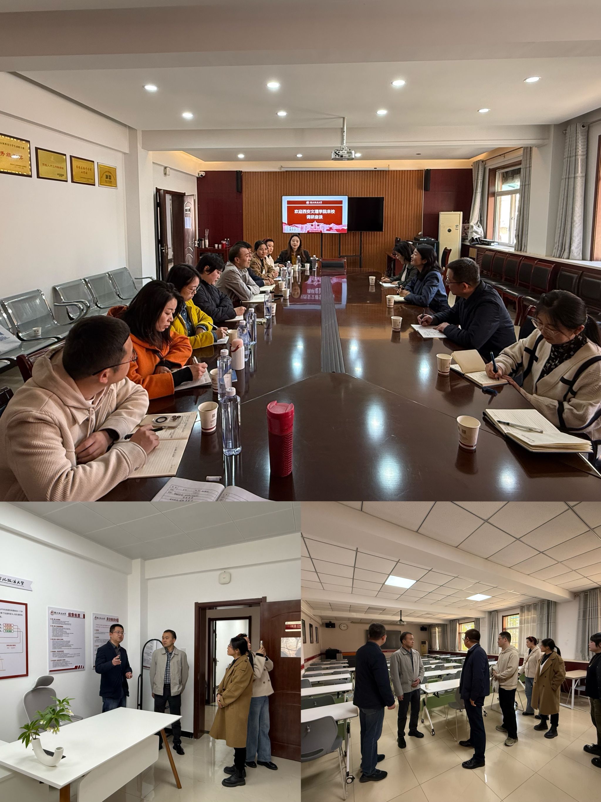 座谈会前,我校一行参观了西北政法大学“一站式”学生就业创业指导中心。西北政法大学招生就业处副处长铁坤详细介绍了中心的组织架构、工作职能以及日常运行情况等。双方一致表示,今后将进一步密切往来,加强合作。