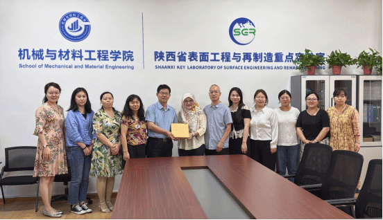 6月20日,马来西亚理工大学杰出学者Aishah Abdul Jalil教授应邀访问我校,在国际交流处副处长边培莹教授、机械与材料工程学院院长张运良教授、化学工程学院院长翟云会教授等陪同下,参观了化学工程学院和陕西省表面工程与再制造重点实验室,深入了解我校在材料科学与工程技术领域的研究成果。