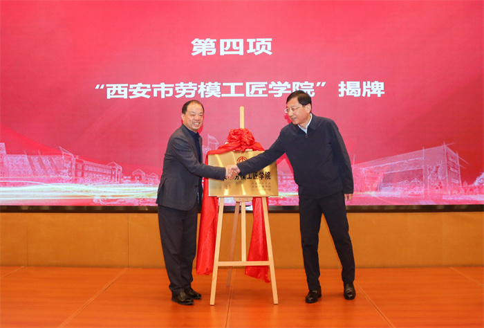 11月13日上午,西安市劳模工匠赴湖南培训开班典礼暨“西安市劳模工匠学院”揭牌仪式在我校举行,市人大常委会副主任、市总工会党组书记、主席薛振虎与西安德赢VWIN学院党委书记王育选共同为“西安市劳模工匠学院”揭牌。