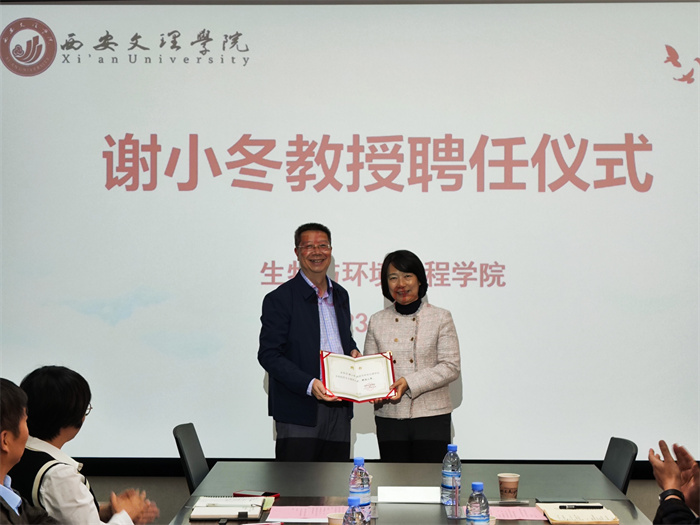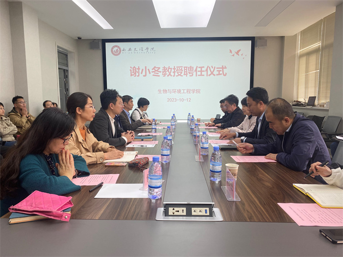 为促进学科专业高质量发展,认真落实校党委“七个五”工作举措,生物与环境工程学院于10月12日下午举行了生物制药专业领军人才谢小冬教授聘任仪式。校党委委员、副校长邬连东,党委委员、校务委员鲍锋,人事处、教务处、科研处、服务地方工作办公室等相关职能部门负责人,生物与环境工程学院全体领导班子及全体博士教师出席了聘任仪式。聘任仪式由鲍锋主持。