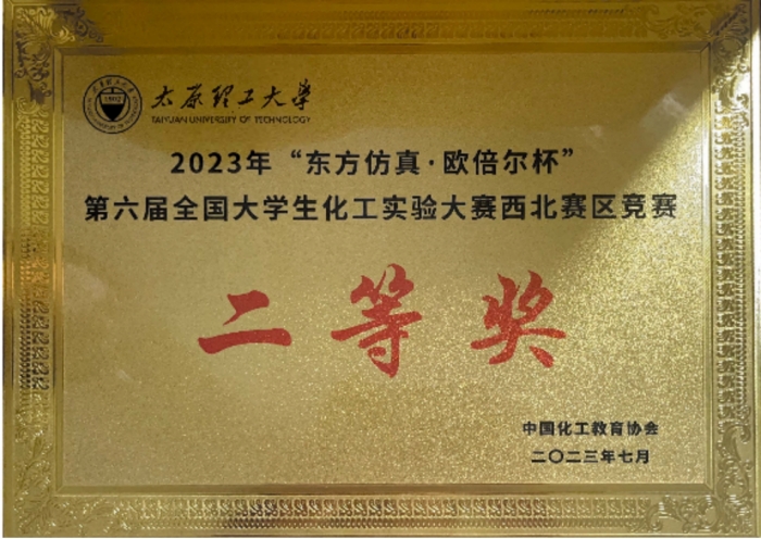 近日,由教育部高等学校化工类专业教学指导委员会、中国化工教育协会主办,太原理工大学承办的2023年“东方仿真·欧倍尔”杯第六届全国大学生化工实验大赛西北赛区竞赛在山西太原举行。来自西北地区39所高校的78支队伍同场竞技。我校化学工程学院学生梁凤仪、王菲、张勇组成的“星启战队”和张文君、张哲滔、刘狄笙组成的“这道题做的队”两支队伍分获特等奖和二等奖。