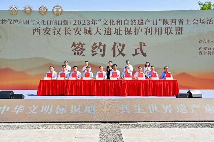 6月10日上午,由陕西省文物局主办、西安市文物局承办的2023年“文化和自然遗产日”陕西省主会场活动在汉长安城未央宫遗址举行。省人大常委会、省委宣传部、省文物局、市文物局、未央区,以及西安交通大学、西北大学等高校领导和代表出席。我校工会主席范宏出席活动并签订合作协议。