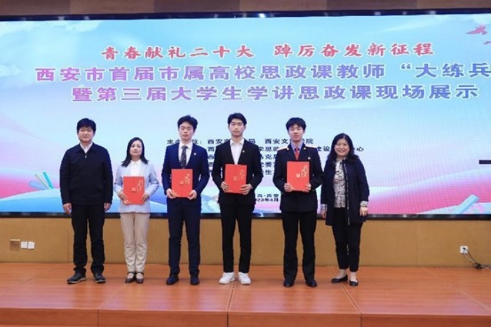 本次活动,是在西安市教育局的指导安排下、在各兄弟院校的大力协作下、在各位专家的大力支持下、在老师学生的积极努力下开展的一堂“大思政课”,体现了新时代“大思政课”的独特魅力,师生同台“竞技”,互相激发、教学相长,学生从坐在台下听到站上讲台讲思政课,极大丰富了校园文化生活,也深化了大学生对思政课教学的认识和思考。青春献礼二十大、踔厉奋发新征程,号角已经吹响,时代催人奋发,让我们用习近平新时代中国特色社会主义思想铸魂育人、启智润心,让思政课越来越成为培养有理想、敢担当、能吃苦、肯奋斗的新时代好青年的主渠道。