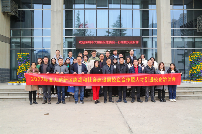 招聘会期间,党委委员、组织部部长袁卫敏,党委统战部常务副部长魏斌,招生就业处处长杨姗姗及相关学院负责人与深圳大鹏新区管委会招才引智团队、致公党西安市委员会一行座谈,并与深圳市大鹏新区统战和社会建设局签订《2023年度校企合作暨技能人才引进合作意向协议书》。