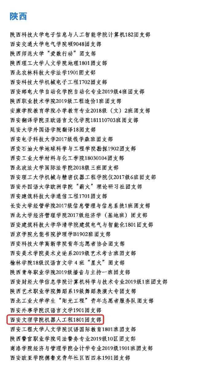 经校级申报、省级初评、展示点赞、全国终审等环节,我校机器人工程1801团支部从全国各高校中脱颖而出,荣获全国高校“活力团支部”称号。