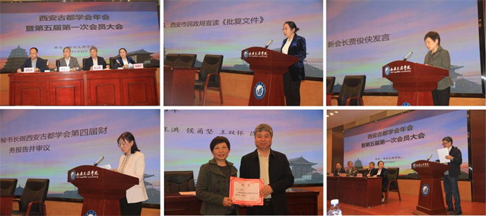 西安古都学会第四届理事会秘书长杨文秀主持换届选举,西安市社科联、民政局领导宣读了《批复文件》。大会审议并表决通过了《西安古都学会第四届工作报告》《西安古都学会第四届财务报告》《西安古都学会选举办法》《西安古都学会章程(草案)》《西安古都学会会费标准和使用管理办法》《西安古都学会内部管理制度》等。会员大会选举出西安古都学会第五届理事会、监事会,并由理事会、监事会选举出会长贾俊侠,副会长曹龙、崔林、李令福、李军、任云英、田静、王社教、王锦锋、席会东、赵东,秘书长王天航,监事长徐卫民。会长贾俊侠教授在大会上表态发言,表示将创新工作思路,整合各种资源,团结广大学会会员,不断为联合攻关古都研究课题创造更多的机会,为西安的城市建设发展和名城保护出谋划策,增强学会凝聚力,开创学会工作新局面;同时还表示,发挥西安古都学会资源优势,为西安德赢VWIN学院学科建设贡献力量。