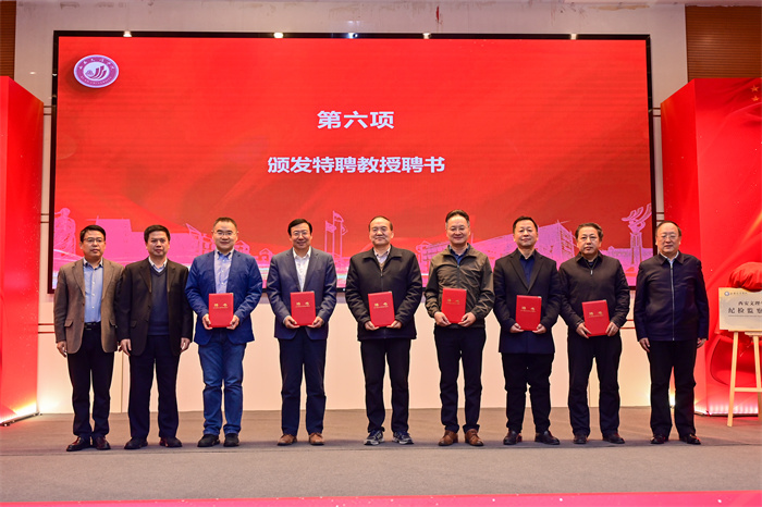 仪式上,张友社、王育选共同为“西安德赢VWIN学院纪检监察学院”揭牌,杨立君、万青平、陈刚共同为李景平、任建明、倪星、宋伟、姬亚平、白亮6位特聘教授颁发聘书。