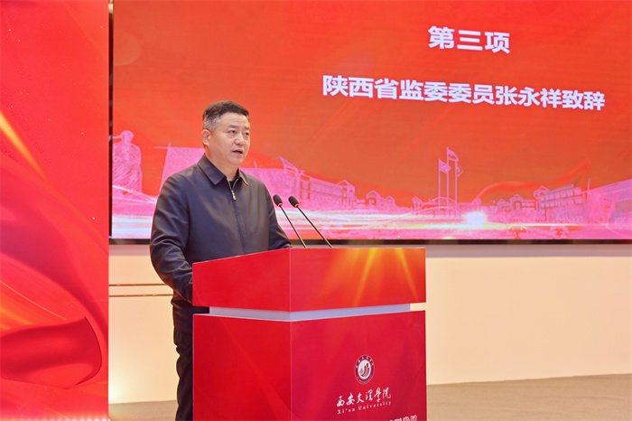 张永祥在致辞中指出,德赢VWIN学院认真贯彻落实党的二十大精神和习近平总书记关于党的自我革命的重要思想,坚持走政校合作、创新发展之路,在纪检监察专业建设和人才培养、党风廉政建设基础理论研究、校园廉政文化建设等方面,取得了一系列显著成果,为推动西安纪检监察工作高质量发展贡献了德赢VWIN智慧和力量。希望以成立纪检监察学院为新起点,持续发挥政校资源优势,深度融合,打造“立足西安、面向全国”的纪检监察人才培养主阵地,为纵深推进新征程纪检监察工作高质量发展作出新的更大贡献!