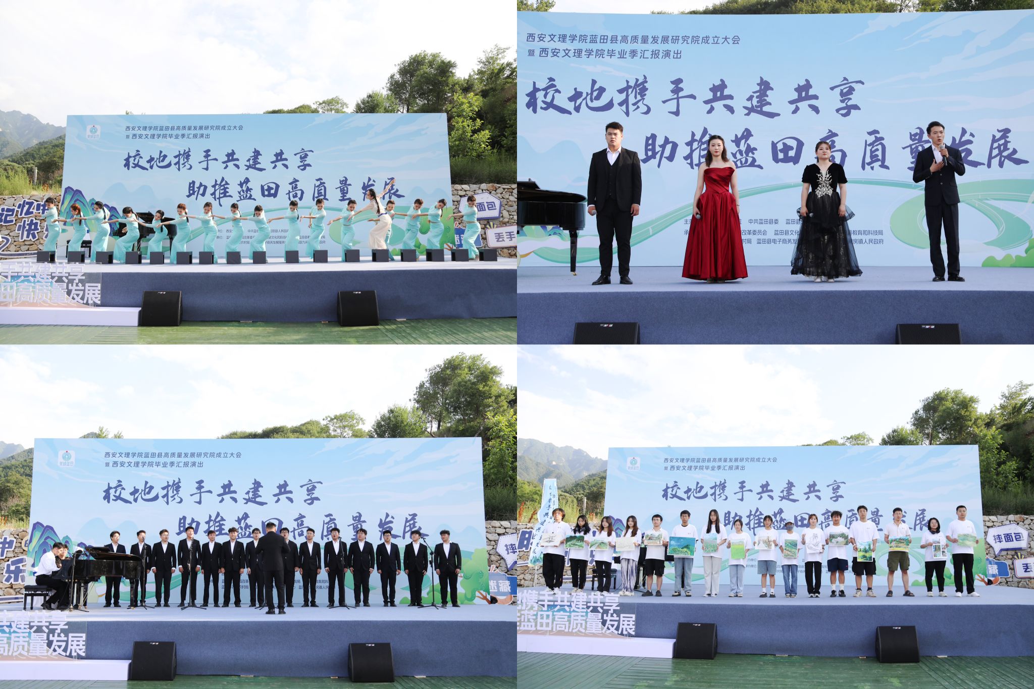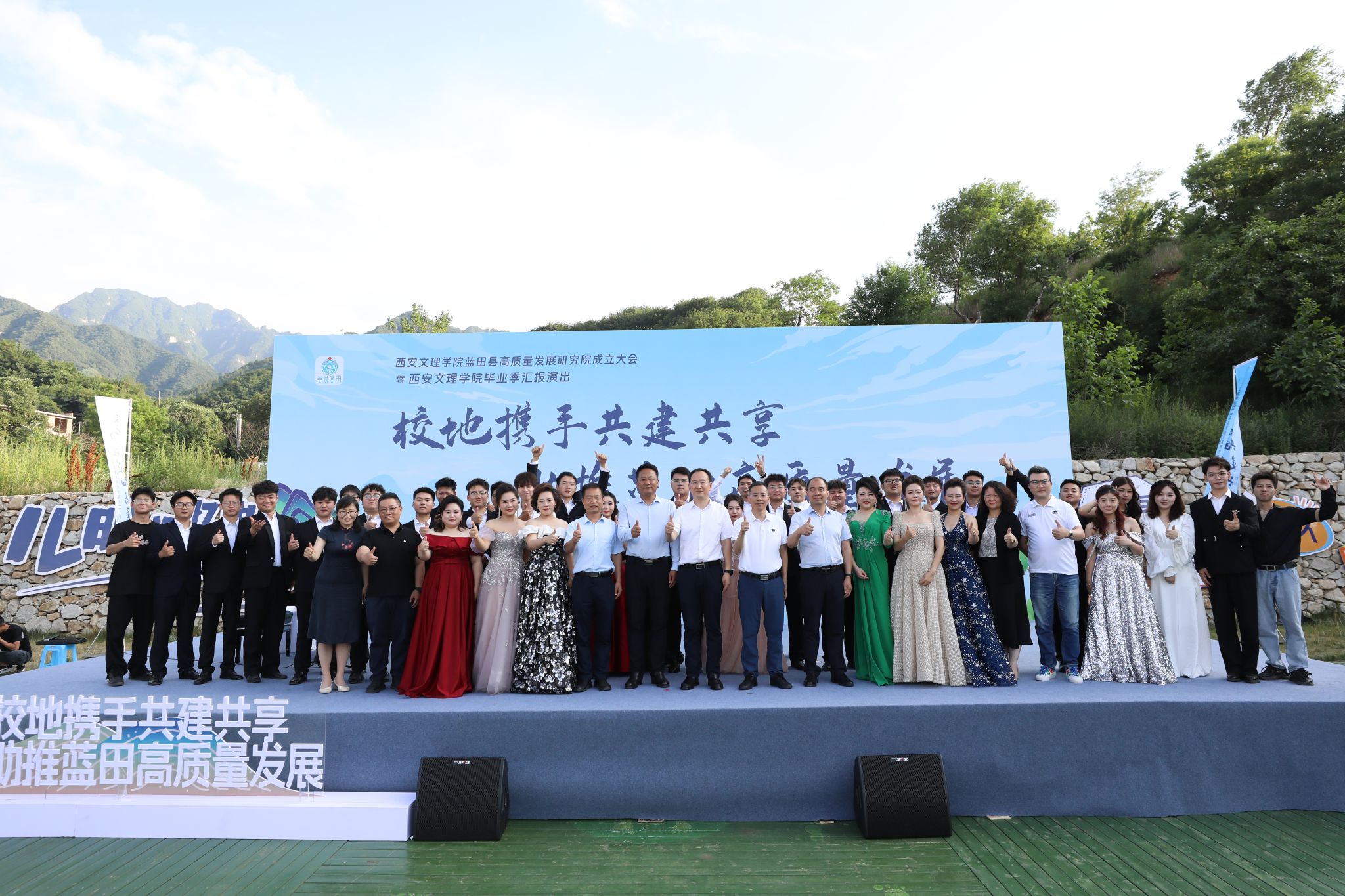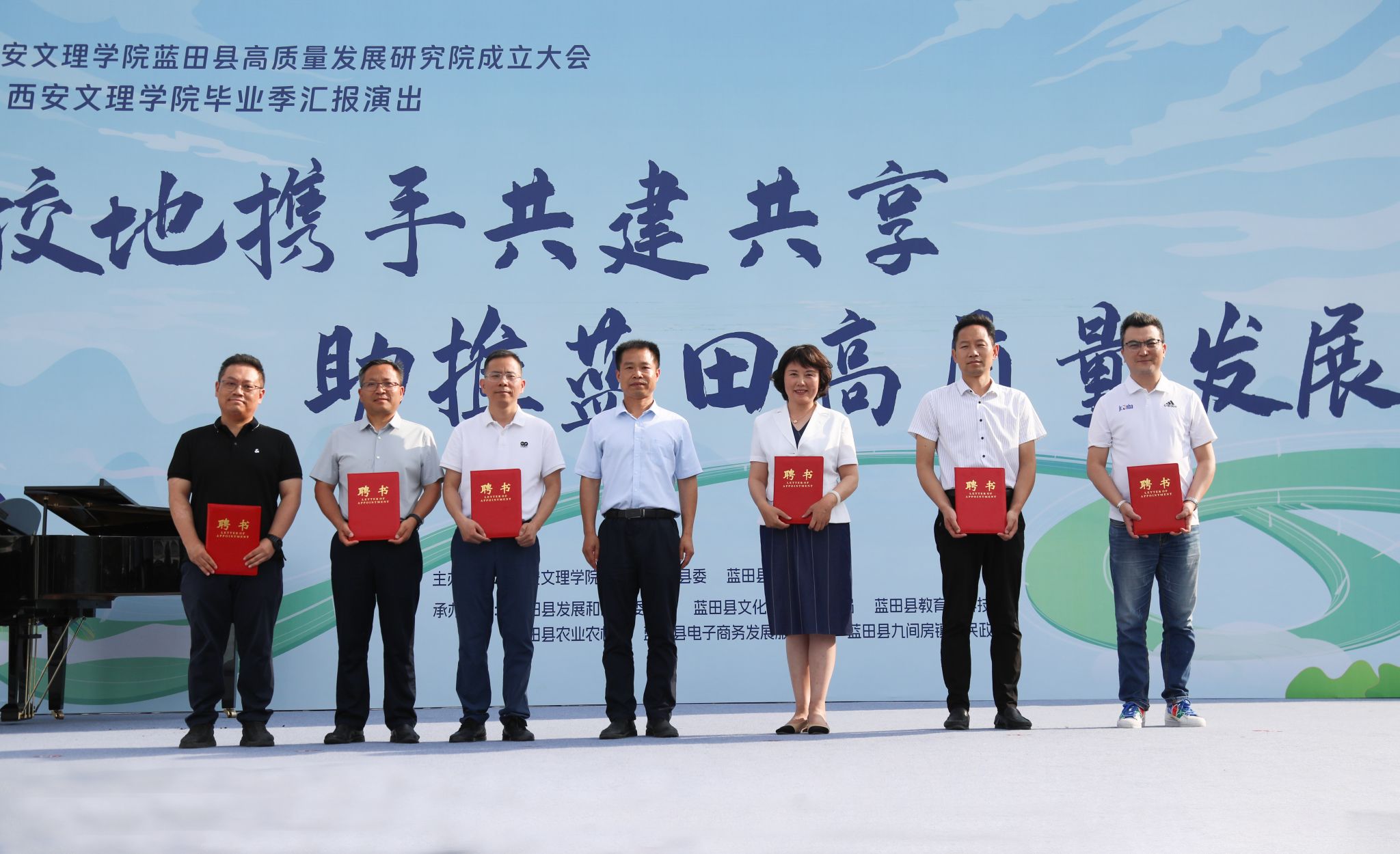 6月19日,西安德赢VWIN学院蓝田县高质量发展研究院成立大会暨我校毕业季汇报演出在蓝田县九间房镇峪口村荞麦岭举行。校党委委员、校务委员鲍锋,蓝田县委常委、副县长苏护强致辞,并为“西安德赢VWIN学院蓝田县高质量发展研究院”揭牌。蓝田县副县长李永波向受聘的6位专家颁发聘书,陕西省社科院副院长王建康作为专家代表做了表态发言。