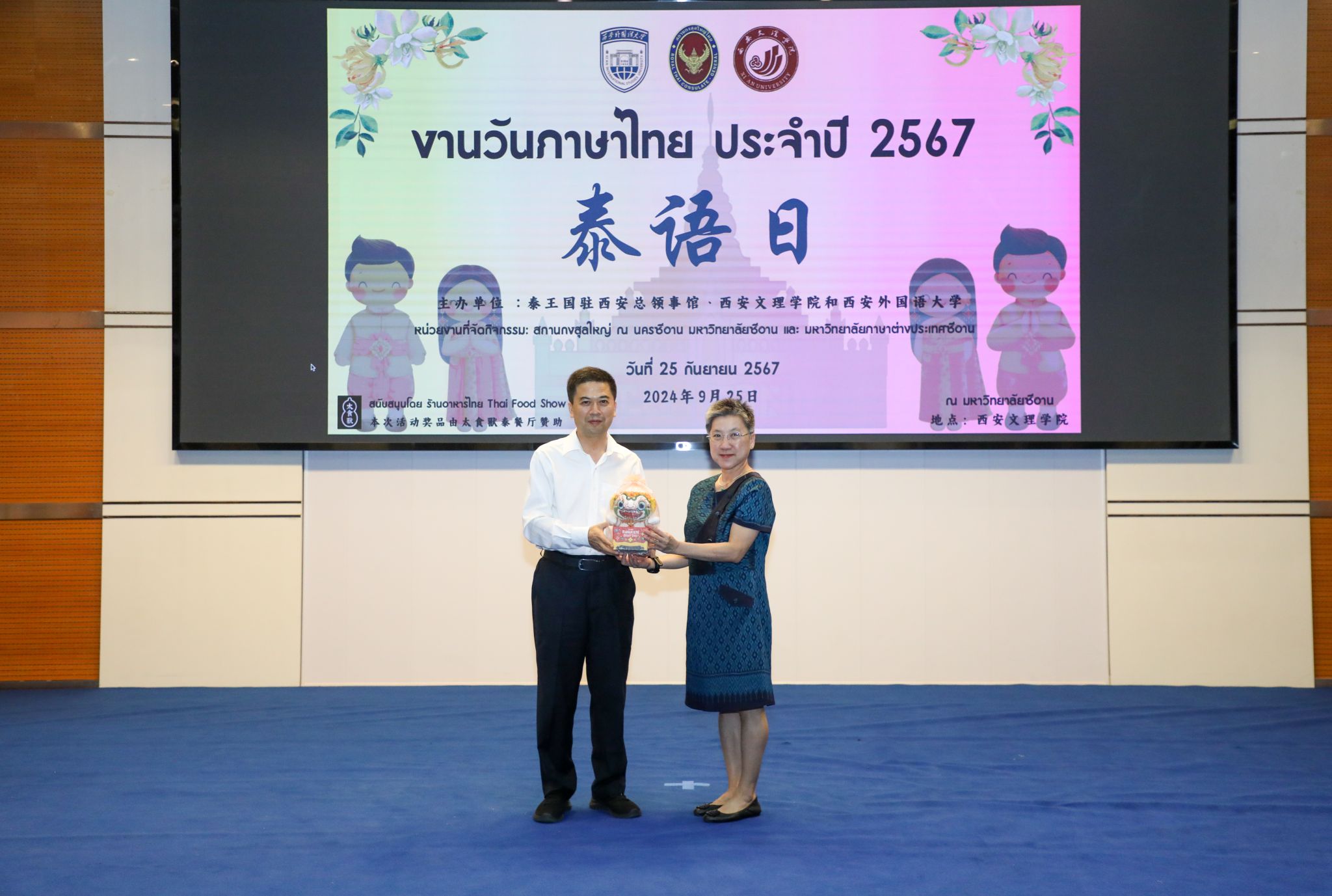 9月25日下午,由我校与泰国驻西安总领事馆联合主办的泰语日活动在我校明德楼A区报告厅成功举办。泰国驻西安总领事馆总领事韩美玲、我校校长陈刚出席活动并致辞。我校副校长任晖、泰国驻西安总领事馆副总领事汪丽娜、领事符致英,西安外国语大学亚非学院党委书记杨瑞,以及我校宣传部、国际教育学院、国际交流处等部门负责人共同参加了此次活动。