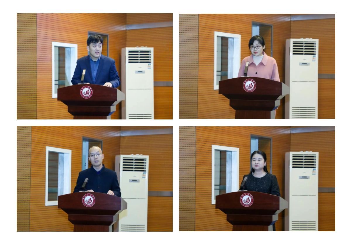 在申硕工作中做出重要贡献的职能部门、首批及第二批硕士学位建设点代表分别上台发言,分别从不同角度讲述了申硕历程中“上下联动、同题共答”的生动故事,充分展现了全体师生在申硕之路上“不忘初心、勇于担当、甘于奉献”的德赢VWIN品格。